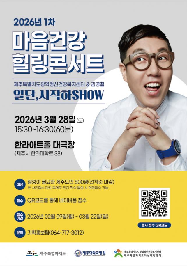 ¡¸¸¶À½°Ç° Èú¸µÄܼƮ¡¹´Â Èú¸µÀÌ ÇÊ¿äÇÑ Á¦ÁÖµµ¹Î 800¸íÀ» ´ë»óÀ¸·Î ÁøÇàµÈ´Ù. Çà»ç´Â ÅäÅ©ÄܼƮ Çü½ÄÀ¸·Î ¾à 60ºÐ°£ ÁøÇàµÉ ¿¹Á¤À̸ç, Á¦ÁÖÆ¯º°ÀÚÄ¡µµ±¤¿ªÁ¤½Å°Ç°º¹Áö¼¾ÅÍ È¨ÆäÀÌÁö¿¡¼ »çÀü ½ÅûÀ» ÅëÇØ Âü¿©ÇÒ ¼ö ÀÖ´Ù.