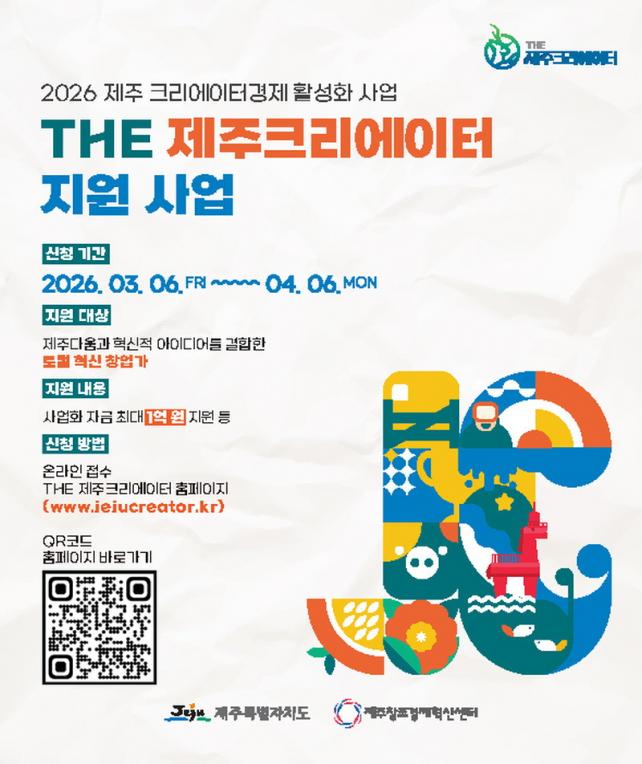 ½ÅûÀº 3¿ù 6ÀÏ(±Ý)ºÎÅÍ 4¿ù 6ÀÏ(¿ù) Àú³á 6½Ã±îÁö THE Á¦ÁÖÅ©¸®¿¡ÀÌÅÍ °ø½Ä ȨÆäÀÌÁö(www.jejucreator.kr)¸¦ ÅëÇØ ¿Â¶óÀÎÀ¸·Î ÁøÇàµÇ¸ç, ¸ðÁý°ø°í¹®°ú »ç¾÷¼³¸íȸ ÀÏÁ¤ µî ±âŸ ÀÚ¼¼ÇÑ ³»¿ëµµ ÇØ´ç »çÀÌÆ®¿¡¼ È®ÀÎÇÒ ¼ö ÀÖ´Ù.