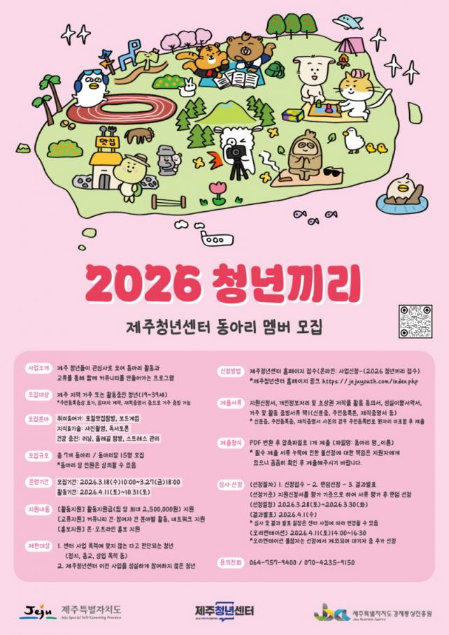 ¡®2026 û³â³¢¸®¡¯´Â Á¦ÁÖ Ã»³âµéÀÌ °øÅë °ü½É»ç¸¦ ±â¹ÝÀ¸·Î ¸ð¿© µ¿¾Æ¸® Ȱµ¿¿¡ Âü¿©Çϰí, ±³·ù¸¦ ÅëÇØ ÀÚ¿¬½º·´°Ô û³â Ä¿¹Â´ÏƼ¸¦ Çü¼ºÇÒ ¼ö ÀÖµµ·Ï Áö¿øÇÏ´Â ÇÁ·Î±×·¥À¸·Î Á¦ÁÖû³â¼¾ÅÍÀÇ ´ëÇ¥ Àα⠻ç¾÷ÀÌ´Ù.