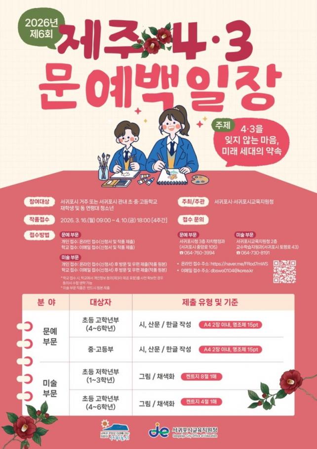 À̹ø ¹®¿¹¹éÀÏÀåÀº ¼±ÍÆ÷½Ã ¼ÒÀç °ÅÁÖ ¶Ç´Â ÀçÇÐÇÏ´Â ÃÊ‧Áß‧°íµîÇлýÀ» ´ë»óÀ¸·Î Çϸç, ÁÖÁ¦´Â ¡®4․3À» ÀØÁö ¾Ê´Â ¸¶À½, ¹Ì·¡¼¼´ëÀÇ ¾à¼Ó¡¯ÀÌ´Ù. ¹®¿¹(½Ã‧»ê¹®)¿Í ¹Ì¼ú(±×¸²) 2°³ ºÐ¾ß·Î ÁøÇàµÈ´Ù.