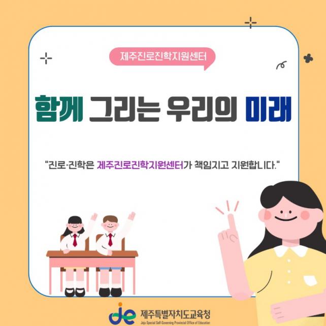 Á¦ÁÖÆ¯º°ÀÚÄ¡µµ±³À°Ã» Á¦ÁÖÁø·ÎÁøÇÐÁö¿ø¼¾ÅÍ´Â Àü¹®ÀûÀÎ ÁøÇÐ Áö¿ø üÁ¦¸¦ ±¸ÃàÇØ Çлý¡¤Çкθ𿡰Դ Á¤º¸ ±â¹Ý ¸ÂÃãÇü ÀԽà Àü·«À» Á¦°øÇÏ°í ±³»ç¿¡°Ô´Â ÁøÇÐÁöµµ ÇÁ·Î±×·¥À» ¿î¿µÇÔÀ¸·Î½á °ø±³À° ½Å·Úµµ¿Í µµ³» ÁøÇÐ °æÀï·Â °È¸¦ ÃßÁøÇÑ´Ù.
