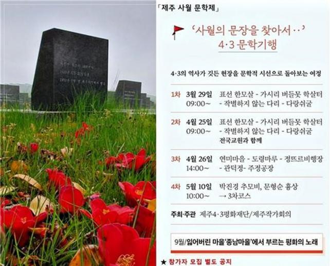 3Â÷(4¿ù 26ÀÏ)´Â ¡°4․3ÀÇ ¹ß´Ü°ú ¼¼°èÈÀÇ »ó¡¡±À» ÁÖÁ¦·Î, ¿À¶ó¸® ¹æÈ»ç°Ç ÇöÀå, °ü´öÁ¤, Á¤¶ß¸£ ºñÇàÀå µî 4․3ÀÇ ½ÃÀÛ°ú Àü°³¸¦ º¸¿©ÁÖ´Â ÁÖ¿ä °ø°£À» ÀÕ´Â ÄÚ½ºÀÌ´Ù. Çö±â¿µ ¼Ò¼³¡®µµ·É¸¶·ç ±î¸¶±Í¡¯¿Í ÇѰ ¼Ò¼³ ¡ºÀÛº°ÇÏÁö ¾Ê´Â´Ù¡»ÀÇ ÀÛǰ ¼¼°è¿Í ¿¬°áÇØ, Á¦ÁÖ4․3À» Àηù º¸ÆíÀÇ ¡®±¹°¡Æø·Â°ú ±â¾ï¡¯À̶ó´Â ¼»ç·Î È®ÀåÇϴµ¥ Àǹ̸¦ µÐ´Ù.