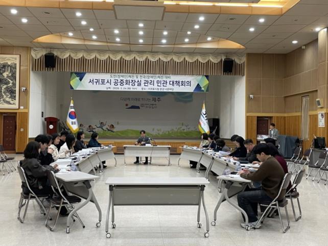 [Á¦ÁÖµµ¹Î½Å¹® = ¿À½ÂÅà ±âÀÚ] ¼­±ÍÆ÷½Ã´Â Áö³­ 24ÀÏ ½Ãû ³Ê¸¥¸¶´ç¿¡¼­ ¿À¸§, µµ½Ã°ø¿ø, ¿Ã·¹ÄÚ½º, ÀüÅë½ÃÀå µî ÁÖ¿ä È­Àå½ÇÀ» °ü¸®ÇÏ´Â ºÎ¼­ ¹× À¯°ü±â°ü°ú ÇÔ²² ¡®¼­±ÍÆ÷½Ã °øÁßÈ­Àå½Ç °ü¸® ¹Î°ü ´ëåȸÀÇ¡¯¸¦ °³ÃÖÇß´Ù.