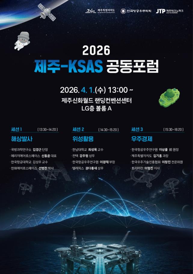 Á¦ÁÖÆ¯º°ÀÚÄ¡µµ¿Í Çѱ¹Ç×°ø¿ìÁÖÇÐȸ°¡ ÁÖÃÖÇϰí Á¦ÁÖÅ×Å©³ëÆÄÅ©(¿øÀå Áö¿µÈç, Á¦ÁÖTP)°¡ ÁÖ°üÇÏ´Â ¡®2026³â Á¦ÁÖÆ¯º°ÀÚÄ¡µµ-Çѱ¹Ç×°ø¿ìÁÖÇÐȸ(KSAS) °øµ¿Æ÷·³¡¯ÀÌ ¿À´Â 4¿ù 1ÀÏ Á¦ÁÖ½ÅÈ¿ùµå¿¡¼ °³ÃֵȴÙ.