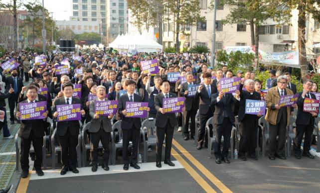 Á¦ÁÖ½Ãû Á¤¹® ¾Õ¿¡¼­´Â À¯Á·°ú ½Ã¹Î´Üü°¡ Âü¿©ÇÑ ¡®4¡¤3Ưº°¹ý °³Á¤ Ã˱¸ °áÀÇ´ëȸ¡¯°¡ ¿­·Á ¿ª»ç ¿Ö°î ó¹ú ±ÔÁ¤ ¸¶·ÃÀÇ ½Ã±Þ¼ºÀ» Àü±¹¿¡ ¾Ë·È´Ù.