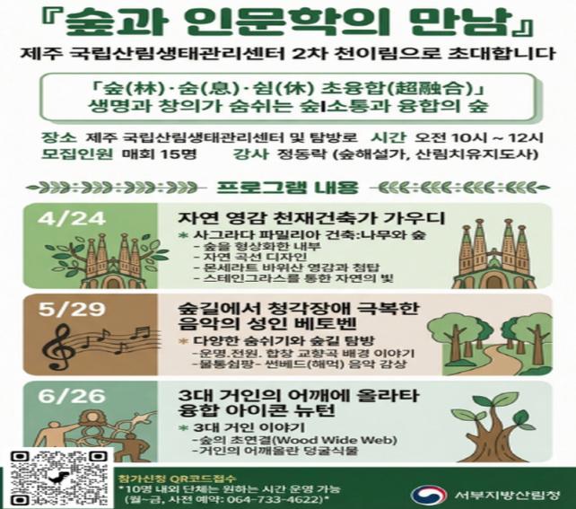 °³ÀÎ Âü¿© Èñ¸ÁÀÚ´Â ¿À´Â 4¿ù 8ÀϺÎÅÍ Çà»ç Æ÷½ºÅÍÀÇ QRÄڵ带 ÅëÇØ ½Åû¼¸¦ ÀÛ¼ºÇÏ¿© Á¦ÃâÇØ¾ß Çϸç, ¼±Âø¼øÀ¸·Î Á¢¼öµÈ´Ù. 10¸í ³»¿ÜÀÇ ´Üü´Â Èñ¸ÁÇÏ´Â ½Ã°£´ë¿¡ º°µµ·Î ¿î¿µµÈ´Ù. À̹ø ÇÁ·Î±×·¥Àº ¡®Å׸¶ Á᫐ Àι®ÇÐÀû ½£Çؼ³¡¯ÀÇ ÀúÀÚÀÎ Á¤µ¿¶ô ½£Çؼ³°¡°¡ ÁøÇàÇÒ ¿¹Á¤ÀÌ´Ù.