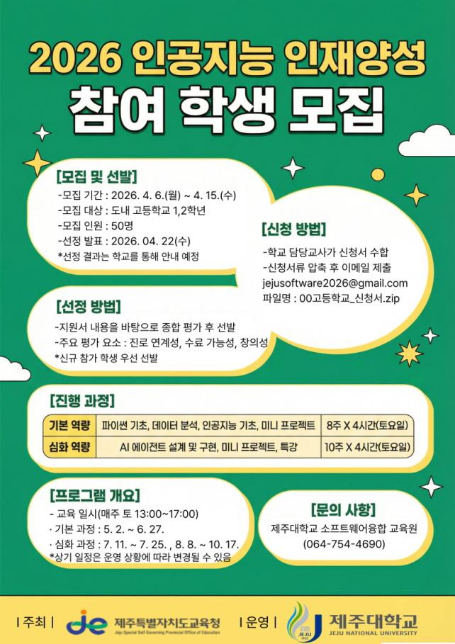ÇÑÆí, Á¦ÁÖÆ¯º°ÀÚÄ¡µµ±³À°Ã» °ü°èÀÚ´Â ¡°ÇлýµéÀÌ ÀΰøÁö´É ±â¼úÀ» Á÷Á¢ üÇèÇϰí À̰ø°è Áø·Î¸¦ ±¸Ã¼ÀûÀ¸·Î ¼³°èÇÒ ¼ö ÀÖ´Â ±âȸ¸¦ Á¦°øÇÏ´Â °ÍÀÌ À̹ø ÇÁ·Î±×·¥ÀÇ ÇÙ½É ¸ñÇ¥¡±¶ó¸ç ¡°¾ÕÀ¸·Îµµ Çлý °³º° Áø·Î¿Í ÀΰøÁö´É ¿ª·®À» ¿¬°áÇÑ ¸ÂÃãÇü ±³À°À» Áö¼ÓÀûÀ¸·Î È®´ëÇØ ÀΰøÁö´É ½Ã´ë¸¦ ¼±µµÇÒ ÀÎÀç·Î ¼ºÀåÇϵµ·Ï Àû±Ø Áö¿øÇϰڴ١±°í ¸»Çß´Ù.