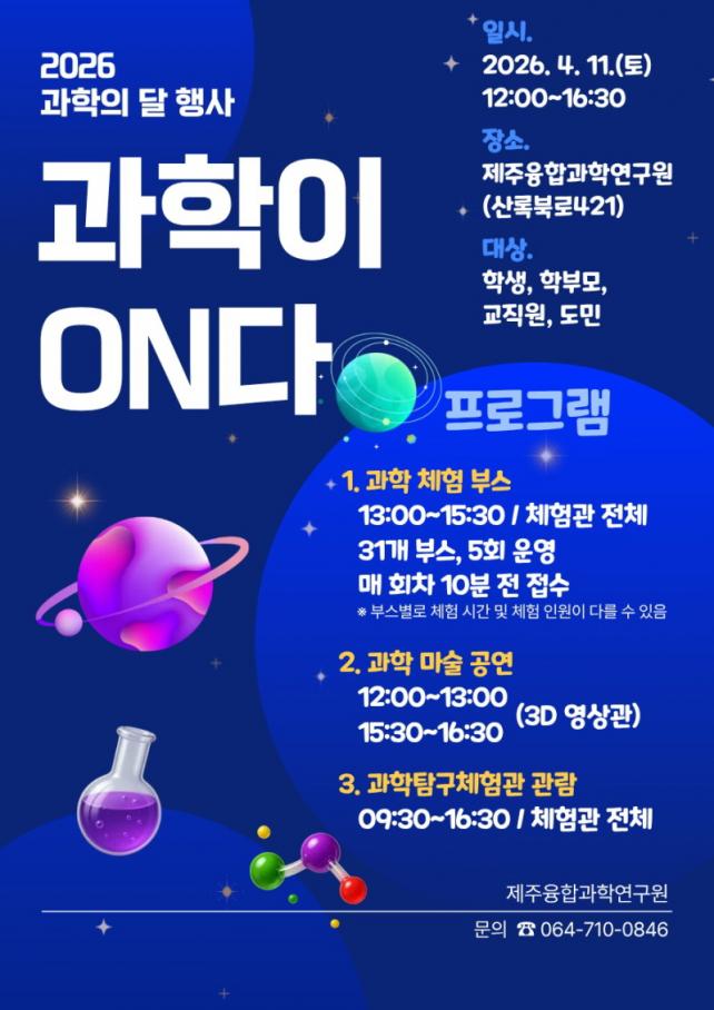 [Á¦ÁÖµµ¹Î½Å¹® = ¿À½ÂÅà ±âÀÚ] Á¦ÁÖÀ¶ÇÕ°úÇבּ¸¿ø(¿øÀå ¼ÛÀçÃæ)Àº °úÇÐÀÇ ´ÞÀ» ¸Â¾Æ ¿À´Â 11ÀÏ(Åä) ¿¬±¸¿ø ÀÏ¿ø¿¡¼­ µµ¹Î°ú ÇÔ²²ÇÏ´Â 2026³â °úÇÐÀÇ ´Þ Çà»ç¡®°úÇÐÀÌ ¿Â(ON)´Ù¡¯¸¦ °³ÃÖÇÑ´Ù.
