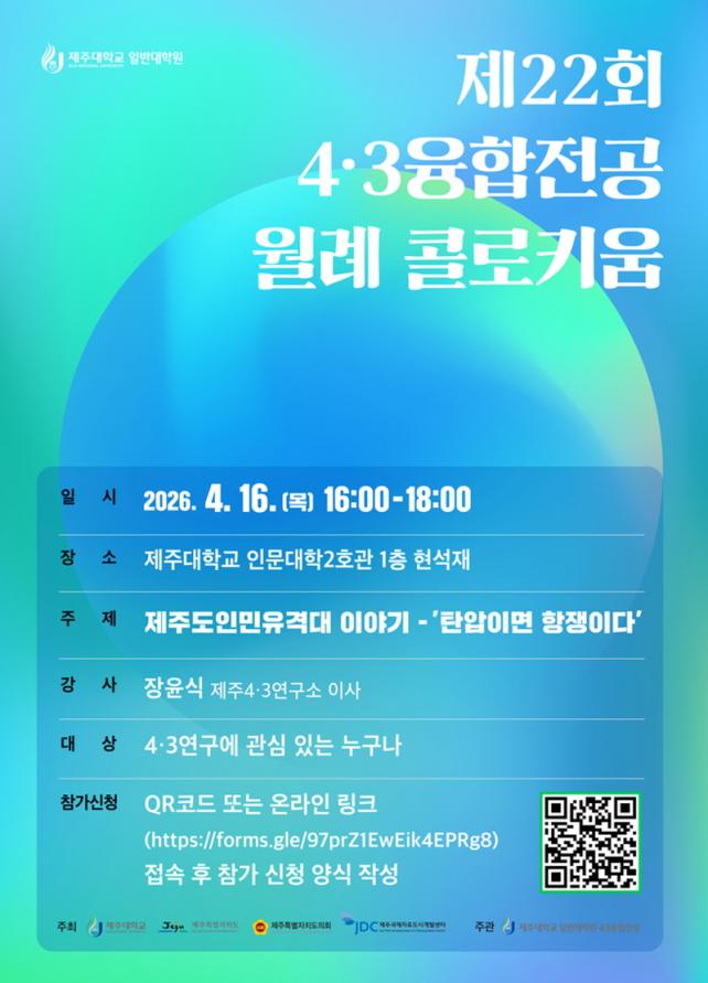 Á¦ÁÖ´ëÇб³, Á¦22ȸ 4.3À¶ÇÕÀü°ø ¿ù·Ê ÄÝ·ÎŰ¿ò °³ÃÖ