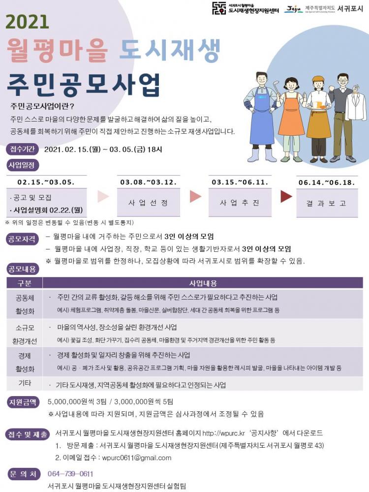 ¡®2021 ¿ùÆò¸¶À» µµ½ÃÀç»ý Áֹΰø¸ð»ç¾÷¡¯Àº ÁÖ¹ÎÀÌ ÁÖü°¡ µÇ¾î Á÷Á¢ °èȹÇÏ°í ½ÃÇàÇÏ´Â °ø¸ð»ç¾÷À¸·Î ÁֹΠÂü¿©·Î ÀÚÄ¡¿ª·®À» °ÈÇϰí, ÁֹΠ³×Æ®¿öÅ©¸¦ Çü¼ºÇÏ¿© Áֹΰøµ¿Ã¼¸¦ Ȱ¼ºÈÇϱâ À§ÇÑ »ç¾÷ÀÌ´Ù.