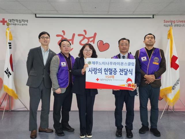 [Á¦ÁÖµµ¹Î½Å¹® = ¿À½ÂÅà ±âÀÚ] Á¦ÁÖ´ÀƼ³ª¹«¶óÀ̿½ºÅ¬·´(ȸÀå ¿ÀÅÂÇå)Àº 4¿ù 15ÀÏ Á¦ÁÖÆ¯º°ÀÚÄ¡µµÇ÷¾×¿ø(¿øÀå ±è¼±Èñ)¿¡ ÇåÇ÷Áõ 154¸Å¸¦ ±âŹÇß´Ù.