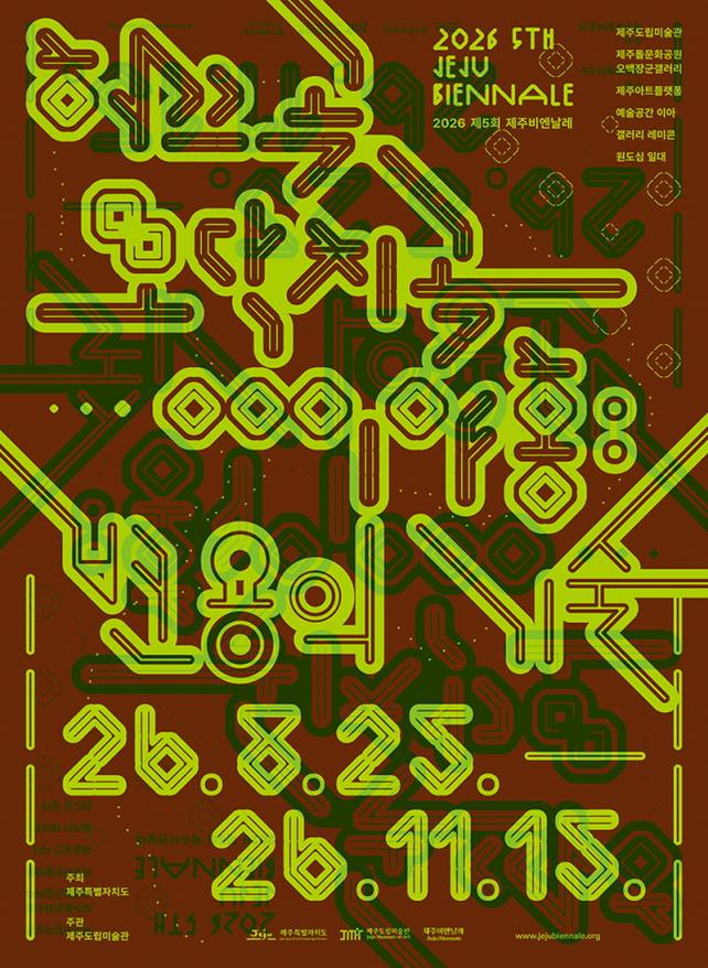 À̹ø¿¡ °ø°³µÈ °ø½Ä Æ÷½ºÅÍ(Ű ºñÁÖ¾ó)´Â Á¦ÁÖ¾î ±ÛÀÚ¸¦ ±âÇÏÇÐÀû ÆÐÅÏÀ¸·Î À籸¼ºÇØ ¼·Î ´Ù¸¥ ¿ä¼ÒµéÀÌ µÚ¼¯À̰í(Çã²ô°î) ¸ð¿©(¸ð´ÚÄ¡°î) »õ·Î¿î ÇüÅ·Πº¯¿ëµÇ´Â °úÁ¤À» ½Ã°¢ÈÇß´Ù. ÀÌ´Â °íÁ¤µÇÁö ¾Ê°í ²÷ÀÓ¾øÀÌ È®ÀåµÇ´Â Á¦ÁÖÀÇ Ç³Å伺À» ´ã¾Æ³½ °ÍÀ¸·Î, À̹ø ºñ¿£³¯·¹ÀÇ ÁÖÁ¦¸¦ ¾ÐÃàÀûÀ¸·Î Ç¥ÇöÇß´Ù.