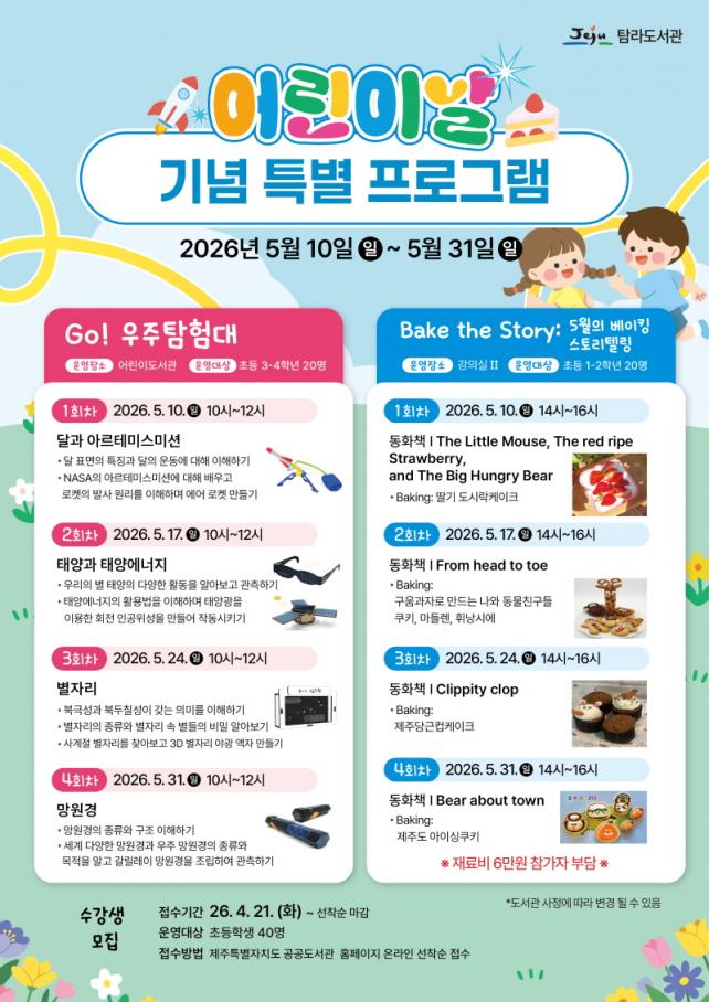 À̹ø ÇÁ·Î±×·¥Àº ¾î¸°ÀÌÀÇ Ã¢ÀǷ°ú À¶ÇÕÀû »ç°í¸¦ Ű¿ï ¼ö ÀÖµµ·Ï ¡®Go! ¿ìÁÖŽÇè´ë¡¯¿Í ¡®Bake the Story: 5¿ùÀÇ º£ÀÌÅ· ½ºÅ丮ÅÚ¸µ¡¯ 2°³ °úÁ¤À¸·Î ±¸¼ºµÆ´Ù.