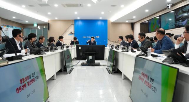 Á¦ÁÖµµ´Â 23ÀÏ ¿ÀÀü ¿À¿µÈÆ Áö»ç ÁÖÀç·Î µµÃ» Àç³¾ÈÀü´ëÃ¥º»ºÎ »óȲ½Ç¿¡¼¡®Áßµ¿»óȲ¿¡ µû¸¥ ´ëÀÀ»óȲ Á¡°ËȸÀÇ(2Â÷)¡¯¸¦ ¿°í Á¤ºÎ Ãß°æ ¿¬°è ÇöȲ°ú ºÐ¾ßº° ¹Î»ý¾ÈÁ¤ ÃßÁø»óȲÀ» Á¾ÇÕ Á¡°ËÇß´Ù.