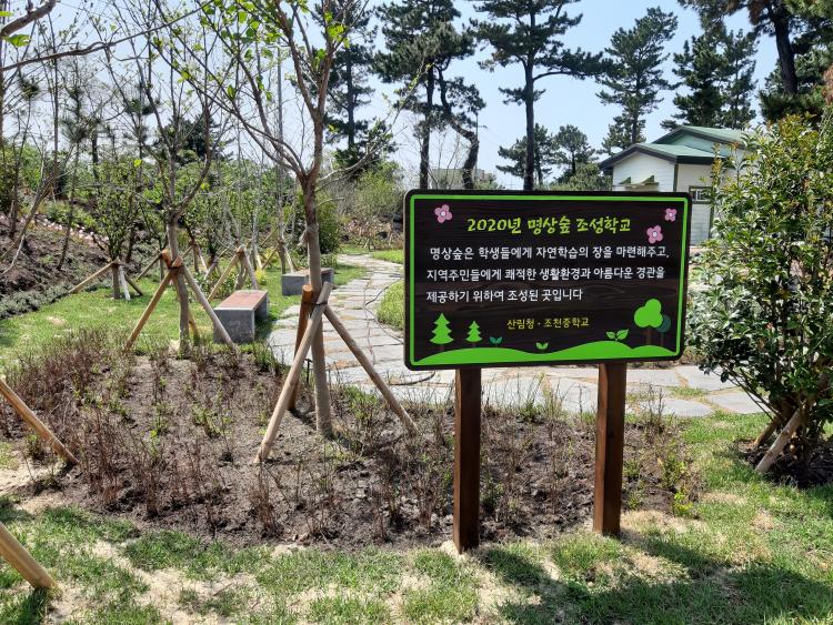 À̹ø¿¡ ±è³çÁßÇб³¿Í ¾îµµÃʵîÇб³¿¡ Á¶¼ºµÇ´Â Çб³½£¿¡´Â °¢ Çб³´ç 6õ¸¸ ¿ø¾¿ ÅõÀԵǸç, ³ì³ª¹«, µ¿¹é³ª¹«, ÈĹڳª¹« µî ±³¸ñ·ù¿Í Ä¡ÀÚ³ª¹«, ¼ö±¹, ¼ö¼ö²É´Ù¸®, ¹é¸®Çâ, º×²É, Å«²æÀǺñ¸§ µî °ü¸ñ°ú ÃÊÈ·ù¸¦ ½ÄÀçÇÑ´Ù. ½ÄÀç°ø°£ »çÀÌ¿¡´Â »êÃ¥·Î°¡ ¿¬°áµÇ°í º¥Ä¡ µîÀÇ ÆíÀǽü³ÀÌ ¼³Ä¡µÇ¾î ÀÚ¿¬ÇнÀ°ø°£ ¹× ½°ÅÍ·Î ÀÌ¿ëµÉ ¿¹Á¤ÀÌ´Ù.