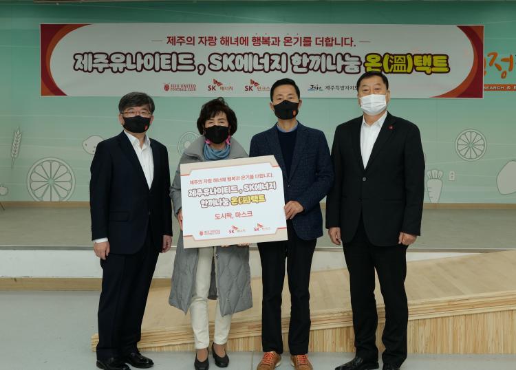 ÁÖ¿ä °ü°è»çÀÎ SK¿¡³ÊÁö¿Í Á¦ÁÖµµ ÀÌ¿¡ ±â²¨ÀÌ µ¿ÂüÇß´Ù. SK¿¡³ÊÁö¿Í Á¦ÁÖ´Â ÇâÈÄ ÃÑ 10ÁÖ°£ °Åµ¿ÀÌ ºÒÆíÇÑ Á¦ÁÖ ÇØ³àµéÀ» Á÷Á¢ ã¾Æ°¡ ÇູÀÇ ¿Â±â°¡ ´ã±ä µµ½Ã¶ô°ú ¸¶½ºÅ©¸¦ Àü´ÞÇÒ °èȹÀÌ´Ù. Á¦ÁÖ ÇØ³àµé¿¡°Ô Àü´ÞµÇ´Â µµ½Ã¶ôÀº Á¦ÁÖµµ³» Áß¼Ò¾÷ü°¡ ¸¸µç´Ù. SK¿¡³ÊÁö°¡ Á¦°øÇÏ´Â ¸¶½ºÅ© 5,000¿© °³´Â SKÀ̳뺣À̼ÇÀÌ Áö¿øÇÏ´Â ¼Ò¼Èº¥Ã³ ¡®¿ÀÅõ¿¥¡¯¿¡¼ Á¦ÀÛÇÑ´Ù. Ãë¾à°èÃþ»Ó¸¸ ¾Æ´Ï¶ó Äڷγª19·Î ¾î·Á¿òÀ» °Þ°í ÀÖ´Â Áö¿ª ¼Ò»ó°øÀΰú »ó»ýÇÑ´Ù´Â Àǹ̸¦ ´õÇß´Ù.