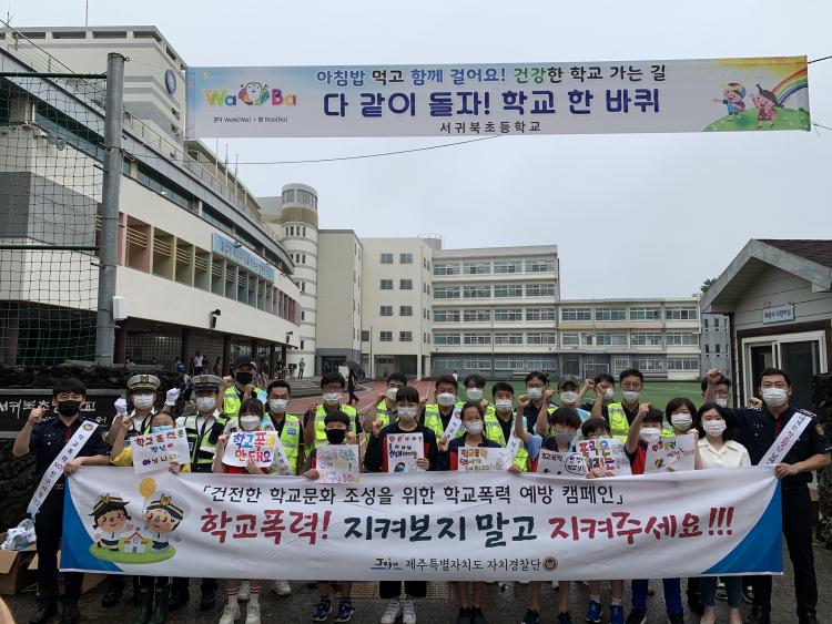 [Á¦ÁÖµµ¹Î½Å¹® = ³²Àç¿Á ±âÀÚ] ¼­±ÍºÏÃʵîÇб³(±³Àå ¹®¿µÈ£) Àü±³¾î¸°ÀÌȸ ÇлýµéÀº 7¿ù 21ÀÏ(È­), ¼­±ÍÆ÷ÀÚÄ¡°æÂû´ë Çб³¾ÈÀüÀü´ã°æÂû°ü, ÁֹκÀ»ç´ë¿Í ÇÔ²² µî±·±æ ÇлýµéÀ» ´ë»óÀ¸·Î Çб³Æø·Â ¿¹¹æ Ä·ÆäÀÎÀ» ½Ç½ÃÇÏ¿´´Ù. Ä·ÆäÀο¡ Âü¿©ÇÑ Àü±³¾î¸°ÀÌȸ ÇлýµéÀº »ç¼ÒÇÑ Àå³­µµ Çб³Æø·ÂÀÌ µÉ ¼ö ÀÖÀ½À» ¾Ë¸®°í Äڷγª19 »óȲ¿¡¼­ '¸öÀº ¸Ö¸®, ¸¶À½Àº °¡±õ°Ô' À¯ÁöÇϸç Çб³Æø·ÂÀÌ ¾ø´Â ÇູÇÑ Çб³»ýȰÀ» À§ÇØ ÇÔ²² ³ë·ÂÇÒ °ÍÀ» ´ÙÁüÇÏ¿´´Ù. Çб³Àü´ã°æÂû°ü°ú ÁֹκÀ»ç´ë´Â µî±³ÇÏ´Â ÇлýÀº ¹°·Ð ¸¶À» Áֹε鿡°Ô ¡®Çб³Æø·Â! ÁöÄѺ¸Áö ¸»°í ÁöÄÑÁÖ¼¼¿ä!¡¯¶ó´Â ¸Þ¼¼Áö¿Í ÇÔ²² ¼Õ ¼Òµ¶ Ƽ½´¸¦ ¹èºÎÇϸç Çб³Æø·ÂÀ» ¿¹¹æÇϰí Äڷγª19 ¿¹¹æ »ýȰ ¾ÈÀü¼öÄ¢ Áؼö¿¡ Èû½á ÁÙ °ÍÀ» ´çºÎÇÏ¿´´Ù. À̹ø Ä·ÆäÀΠȰµ¿À» ÅëÇØ ¼­±ÍºÏÃÊ ±³À°°¡Á·µéÀº Çб³Æø·Â ¾ø´Â ¾ÈÀüÇÑ Çб³»ýȰÀ» À§ÇØ ÇÔ²² ³ë·ÂÇÒ °ÍÀ» ´ÙÁüÇß´Ù.