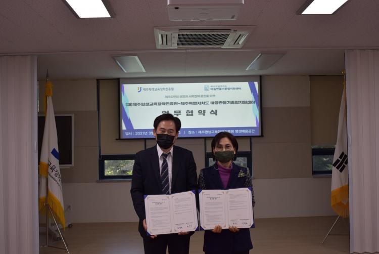 Á¦ÁÖÆò»ý±³À°ÀåÇÐÁøÈï¿ø ÇãÁ¤¿Á ¿øÀå°ú Á¦ÁÖÆ¯º°ÀÚÄ¡µµ ¸¶À»¸¸µé±âÁ¾ÇÕÁö¿ø¼¾ÅÍ ±èÇи𠼾ÅÍÀå µî 10¿© ¸íÀÌ Âü¼®ÇÑ À̹ø Çù¾à½ÄÀº µÎ ±â°ü °£ÀÇ ±³·ù¡¤Çù·ÂÀ» ÅëÇØ °øµ¿ ¹ßÀü ü°è¸¦ ±¸ÃàÇϰíÀÚ ¸¶·ÃÇÑ °ÍÀÌ´Ù.