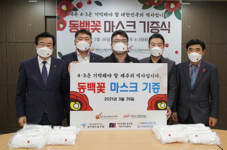 Á¦ÁÖ4‧3ÆòÈÀç´Ü(ÀÌ»çÀå ¾çÁ¶ÈÆ)°ú Á¦ÁÖ4‧3Èñ»ýÀÚÀ¯Á·È¸(ȸÀå ¿ÀÀÓÁ¾)´Â 26ÀÏ 4‧3Æòȱâ³ä°ü ´ëȸÀǽǿ¡¼ Á¦ÁÖµµ°ø¹«¿ø³ëµ¿Á¶ÇÕ µîÀÇ µ¿¹é²É¸¶½ºÅ© ±âÁõ½ÄÀ» °¡Á³´Ù. ÀÌµé ±â°ü‧´Üü°¡ ±âÁõÇÑ ¸¶½ºÅ©´Â µ¿¹é·Î°í°¡ ÇÁ¸°Æ®µÈ °ÍÀ¸·Î ¸ðµÎ 2,000ÀåÀÌ´Ù.