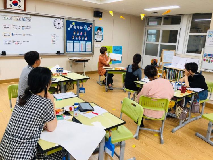 [Á¦ÁÖµµ¹Î½Å¹® = ³²Àç¿Á ±âÀÚ] ¼ö»êÃʵîÇб³(±³Àå °­ÀÎÀÚ)´Â 7¿ù 22ÀÏ(¼ö)¿¡ Á¦ÁÖµµ¼­°üÄ£±¸µé Çã¼ø¿µ ȸÀå´ÔÀ» °­»ç·Î ÃÊûÇÏ¿© ±³¿ø ´ë»ó ¡®±×¸²Ã¥ ¿¬¼ö'¸¦ 5¿ùºÎÅÍ ÃÑ 4ȸ¿¡ °ÉÃÄ ½Ç½ÃÇÏ¿´½À´Ï´Ù. ±×¸²Ã¥À¸·Î ÀÏ»óÀÇ Ã¥ Àб⠽Çõ ¹æ¹ý°ú ºÏ ÅäÅ©, µ¶È¸, ºñ°æÀï µ¶¼­ Åä·Ð ¹æ¹ýÀ» ¼Ò°³ ¹ÞÀ½°ú ¾Æ¿ï·¯ ½ÇÁ¦ Ã¥ Àд ½Ã°£À» °®°í ´À³¦À» ³ª´©¾î º¸´Â ½Ã°£À¸·Î ¿î¿µµÇ¾ú´Ù. À̹ø ¿¬¼ö´Â ±×¸²Ã¥ÀÇ Æ¯Â¡À» ÀÌÇØÇÏ°í ¾ÆÀ̵é°ú ÇÔ²² ±×¸²Ã¥À» ³ª´©´Â ´Ù¾çÇÑ ¹æ¹ýÀ» ¹è¿ì¸é¼­ ±×¸²Ã¥À» ÅëÇÑ Àμº ÁöµµÀÇ Àü¹®¼ºÀ» Ű¿ì´Â À¯ÀÍÇÑ ½Ã°£ÀÌ µÇ¾ú´Ù.