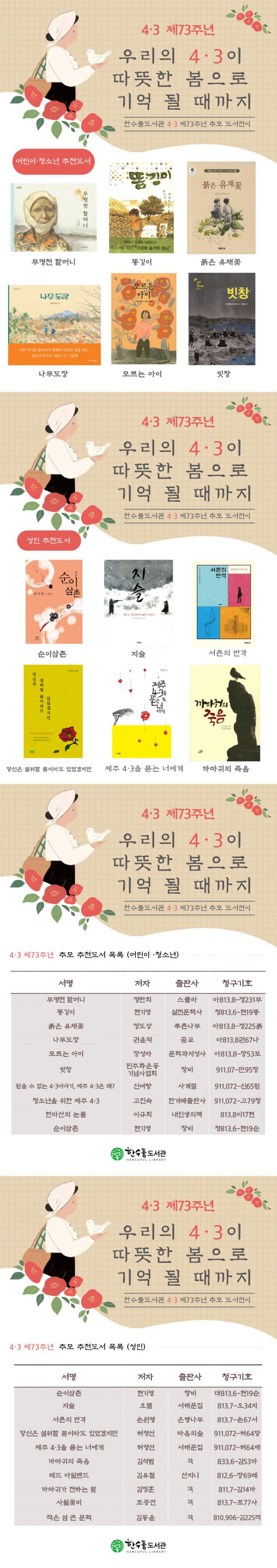 À̹ø Àü½Ã´Â 4¿ù ÇÑ ´Þ µ¿¾È ÇѼöÇ®µµ¼°ü º»°ü 2Ãþ ²Þ´©¸®½Ç¿¡¼ ÁøÇàµÉ ¿¹Á¤À̰í, °ü·Ã µµ¼¿¡´Â ¡â¹«¸íõ ÇÒ¸Ó´Ï ¡â¶Ë±ëÀÌ ¡âºÓÀº À¯Ã¤²É µî ¾î¸°ÀÌ¡¤Ã»¼Ò³â Ãßõµµ¼ 10±Ç, ¡â¼øÀÌ»ïÃÌ ¡âÁö½½ ¡â¼¸¥ÀÇ ¹Ý°Ý µî ¼ºÀÎ Ãßõµµ¼ 10±Ç, ÃÑ 20±ÇÀÌ Àü½ÃµÈ´Ù.