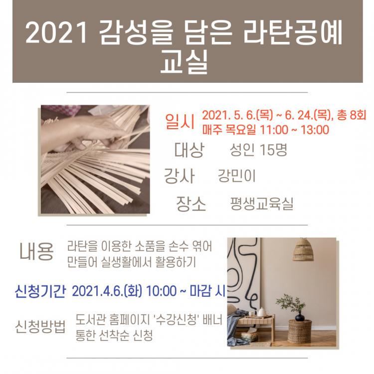 ¡®2021 °¨¼ºÀ» ´ãÀº ¶óź°ø¿¹ ±³½Ç¡¯¿¡¼´Â Âü°¡ÀÚµéÀÌ °¹ÎÀÌ °»çÀÇ Áöµµ·Î ¶óźÀ» ÀÌ¿ëÇÏ¿© ½Ç»ýȰ¿¡ ÇÊ¿äÇÑ ¼ÒǰÀ» ¼Õ¼ö ¿«À¸¸é¼ µî°ø¿¹ÀÇ ¹Ù´ÚÂ¥±â, ¹«´Ì³Ö±â ¹× ¸¶°¨±â¹ýÀ» ¹è¿ö Ȱ¿ëÇÒ ¼ö ÀÖ´Ù
