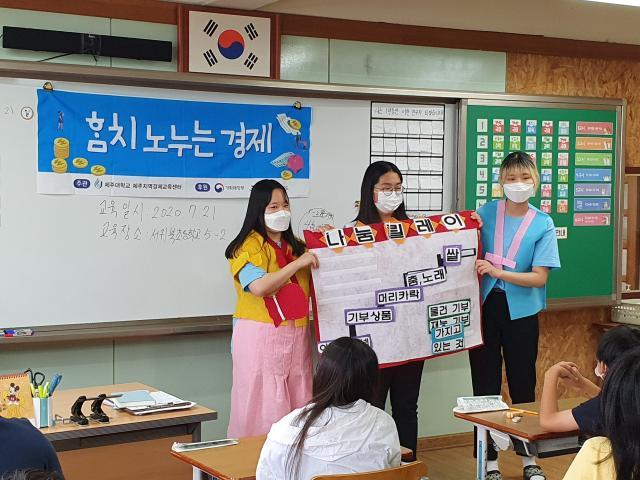 [Á¦ÁÖµµ¹Î½Å¹® = ³²Àç¿Á ±âÀÚ] ¼­±ÍºÏÃʵîÇб³(±³Àå ¹®¿µÈ£)¿¡¼­´Â 7¿ù 22ÀÏ(È­)~24ÀÏ(±Ý)¿¡ Á¦ÁÖ´ëÇб³ Á¦ÁÖÁö¿ª°æÁ¦±³À°¼¾ÅÍ¿¡¼­ Çб³¸¦ ¹æ¹®ÇÏ¿© 5ÇгâÀ» ´ë»óÀ¸·Î [Ȩġ ³ë´©´Â °æÁ¦]¶ó´Â ÁÖÁ¦·Î °æÁ¦±³À°À» ½Ç½ÃÇÏ¿´´Ù. °æÁ¦±³À°¿¡¼­´Â ³ª´®À» ½ÇõÇÑ ¿¾ À§ÀεéÀÇ ¾÷Àû ¿µ»ó ½Ãû°ú »ýȰ ¼Ó ±âºÎ Ȱµ¿À» ¾Ë¾Æº¸°í Á÷Á¢ ±âºÎÇÒ ¼ö ÀÖ´Â °ÍµéÀ» »ý°¢Çغ¸°í ´ÙÁüÇÏ´Â ³ª´®Æ®¸®¸¦ ¸¸µé¾ú´Ù. ¶ÇÇÑ ¿ªÇÒ±Ø, ³ª´®¼ÛÀ» ºÎ¸£¸é¼­ ½±°í Àç¹ÌÀÖ°Ô °æÁ¦ Áö½ÄÀ» ÀÌÇØÇÒ ¼ö ÀÖ¾ú´Ù. À̹ø °æÁ¦±³À°À» ÅëÇØ ÇлýµéÀº °æÁ¦È°µ¿ÀÇ Àǹ̸¦ ¾Ë°í ³ª´®°ú ±âºÎ¸¦ ½ÇõÇÒ ¼ö ÀÖ´Â »çȸ ±¸¼º¿øÀ¸·Î ¼ºÀåÇÒ ¼ö ÀÖ´Â ÀÇ¹Ì ÀÖ´Â ½Ã°£ÀÌ µÇ¾ú´Ù.