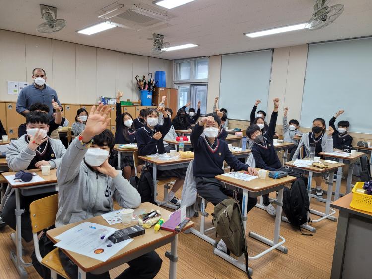 ¼ºÎ¿Ü±¹¹®ÈÇнÀ°ü ¼Ò¼Ó ¿ø¾î¹Î±³»ç 2¸íÀÌ Á÷Á¢ Çб³ ÇöÀåÀ» ã¾Æ Çлýµé°ú ÇÔ²²¡®Å¾ç°è Ç༺ ÆÈÂî ¸¸µé±â¡¯ Ȱµ¿À» ÇÏ¿´´Ù.