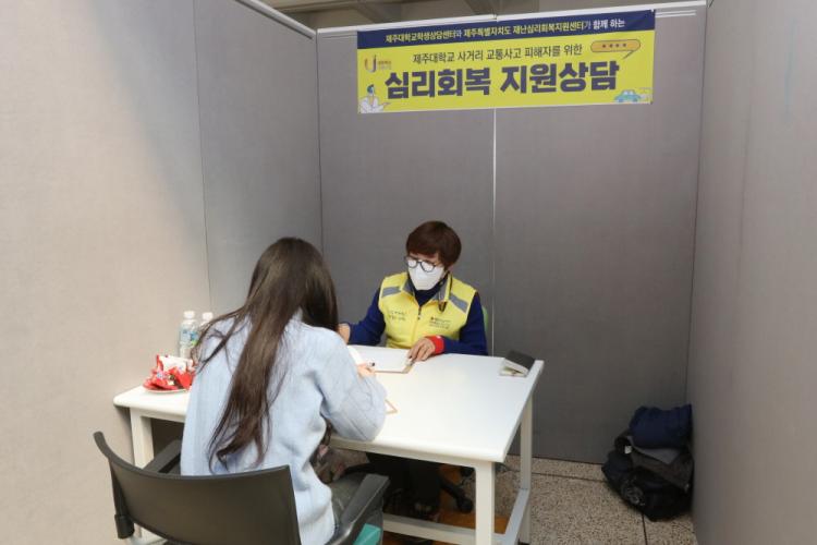 [Á¦ÁÖµµ¹Î½Å¹® = ¿À½ÂÅà ±âÀÚ] Á¦ÁÖ´ëÇб³ Çлý»ó´ã¼¾ÅÍ(¼¾ÅÍÀå ÃÖº¸¿µ)´Â Á¦ÁÖÆ¯º°ÀÚÄ¡µµ À糽ɸ®È¸º¹Áö¿ø¼¾ÅÍ¿Í ÇÕµ¿À¸·Î 14ÀϺÎÅÍ ¿À´Â 23ÀϱîÁö Á¦ÁÖ´ë ÀÔ±¸ »ç°Å¸®¿¡¼ ¹ß»ýÇÑ ±³Åë»ç°í ÇÇÇØÀÚ ¹× ¸ñ°ÝÀÚ¤ý±¸Á¶ÀÚ µîÀ» ´ë»óÀ¸·Î ½É¸®È¸º¹Áö¿ø Àӽà »ó´ãºÎ½º¸¦ ¿î¿µÇϰí ÀÖ´Ù.