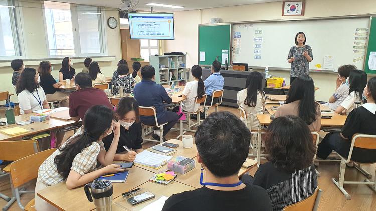 [Á¦ÁÖµµ¹Î½Å¹® = Á¤½ÂÇö ±âÀÚ] ¿À¶óÃʵîÇб³(±³Àå ¾ç¼ø¿í)´Â Á¦ÁÖÇü Çõ½ÅÇб³ÀÎ ´ÙÈ¥µð ¹è¿òÇб³¿¡ ´ëÇÑ ±³Á÷¿øÀÇ ÀÌÇØ¸¦ µ½±â À§ÇØ µµ±³À°Ã» ¾÷¹«´ã´çÀÚÀÎ °­ÀºÁÖ ÀåÇл縦 ÃÊ´ëÇÏ¿© ±³Á÷¿ø ´ë»ó ´ÙÈ¥µð¹è¿òÇб³ ¼³¸íȸ¸¦ 7. 22.(¼ö) ½Ç½ÃÇÏ¿´´Ù. ¿À¶óÃÊ´Â 2020Çг⵵ ´ÙÈ¥µð ¹è¿òÁغñÇб³¸¦ ¿î¿µÇÏ¸é ´ÙÈ¥µð ¹è¿òÇб³ ¿î¿µ¿¡ ´ëÇØ °ü½ÉÀ» °¡Áö°í ±³Á÷¿øÀÇ ¿ª·® °­È­¸¦ À§ÇÑ È°µ¿À» ÁøÇàÇϰí ÀÖ´Ù. À̹ø ¼³¸íȸµµ ´ÙÈ¥µð ¹è¿òÇб³ ¿î¿µ¿¡ ´ëÇÑ ÀÌÇØ¸¦ µµ¸ðÇϰíÀÚ ÁøÇàµÇ¾ú´Ù. ¼³¸íȸ¸¦ ÅëÇØ ÀÚÀ¯·Ó°Ô À̾߱⸦ ³ª´©´Â ¼Ó¿¡¼­ Á¦ÁÖÇü Çõ½ÅÇб³ÀÎ ´ÙÈ¥µð ¹è¿òÇб³¿¡ ´ëÇÑ Àü¹ÝÀûÀÎ ÀÌÇØ¿Í ´õºÒ¾î ´ÙÈ¥µð ¹è¿òÇб³ ¿î¿µÀ» ÅëÇØ ±â´ëµÇ´Â ¼ºÀåÀÇ ¸ð½À°ú ´õºÒ¾î Áß±Ô¸ð Çб³¿¡¼­ ¿î¿µ ½Ã ¿¹»óµÇ´Â ¾î·Á¿òµé¿¡ ´ëÇØ ¼­·Î À̾߱⸦ ³ª´©¸ç ´ÙÈ¥µð ¹è¿òÇб³¿¡ ´ëÇÑ ¿ÀÇØ¿Í Áø½ÇÀ» »ç·Ê¸¦ ÅëÇØ Åì¾Æº¸´Â ½Ã°£À» °¡Á³´Ù. À̸¦ ÅëÇØ ±³Á÷¿øµéÀÇ ´ÙÈ¥µð ¹è¿òÇб³ ¿î¿µ¿¡ ´ëÇÑ ÀÌÇØ¸¦ ³ôÀÌ´Â ±âȸ°¡ µÇ¾ú°í, ÇлýÀ» À§ÇÑ ±³À°È°µ¿ Àü°³¿Í ¹ÎÁÖÀû Çб³ ¿î¿µ ¹æ½Ä¿¡ ´ëÇØ °í¹ÎÇØ º¸´Â ½Ã°£ÀÌ µÇ¾ú´Ù. À̸¦ ¹ßÆÇÀ¸·Î 2Çб⿡´Â Çб³ Çõ½Å Ȱµ¿À» °­È­ÇÏ´Â ÀÇÁö¸¦ ´ÙÁö´Â ±âȸ°¡ µÇ¾ú±æ ±â´ëÇØ º»´Ù.