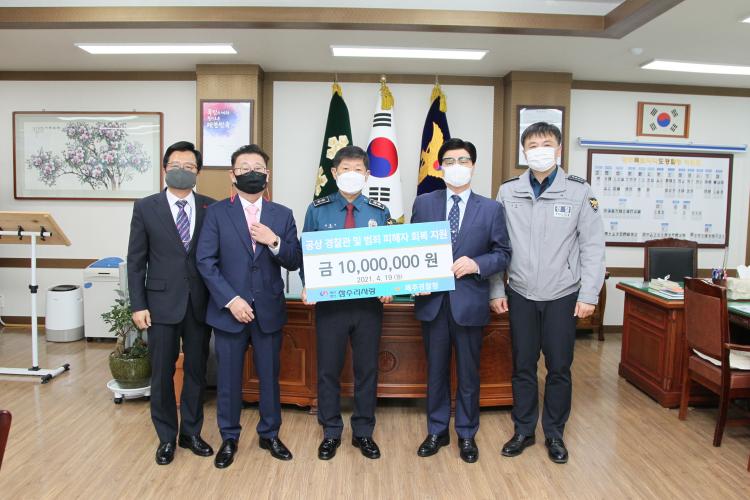À̳¯ Àü´Þ½Ä¿¡¼´Â Âü¼ö¸®»ç¶û ¿î¿µÀ§¿øÀå ¹Ú³ë¾Æ(¸ñ»ç), ÃÖÁ¾¸é ¼±±³¸ñ»ç, ¹®¼¼ÈÆ Á¦ÁÖÁöºÎÀåÀÌ Âü¼®ÇØ Á¦ÁÖû ¼øÁ÷°æÂû°ü À¯Á· ¹× °ø»ó°æÂû°ü, °¡Á·Æø·Â µî ¹üÁËÇÇÇØÀÚ ÃÑ 8¸í¿¡°Ô ÃÑ 1õ¸¸¿øÀ» Áö¿øÇÏ¿´´Ù.