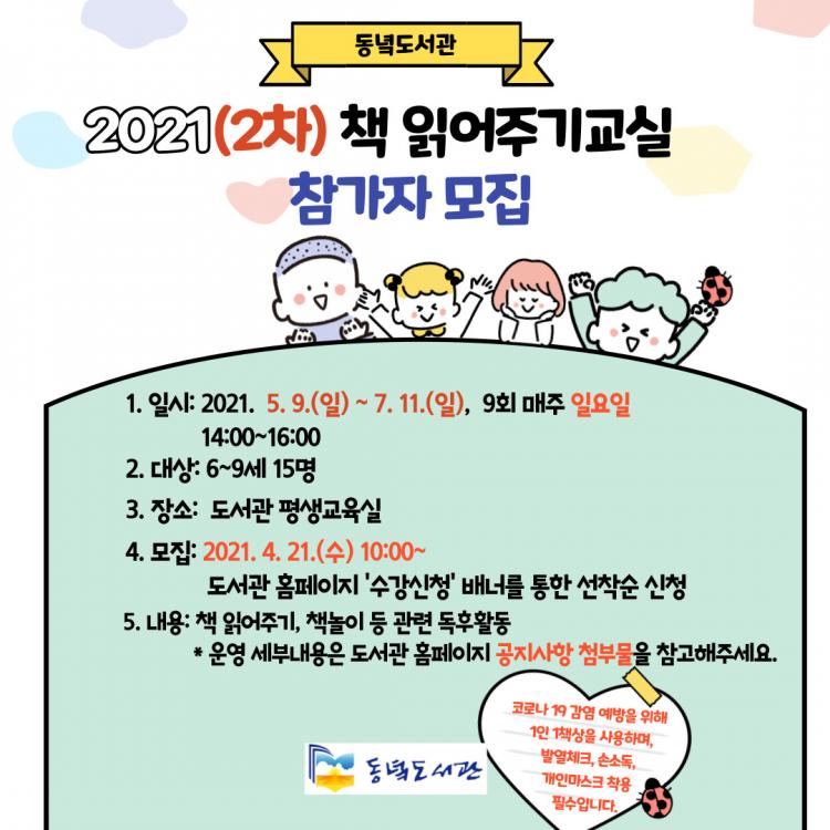 Ã¥ ÀоîÁֱ⠱³½ÇÀº Âü°¡ ¾î¸°À̵é·Î ÇÏ¿©±Ý µ¶¼ÀÇ Áñ°Å¿òÀ» ±ú´Ýµµ·Ï ÇÏ°í µµ¼°ü ÀÌ¿ë »ýȰȸ¦ À¯µµÇϰíÀÚ ¿î¿µÇÏ´Â ÇÁ·Î±×·¥À¸·Î, ±è¹Ì¿µ(µ¿È±¸¿¬°¡) °»çÀÇ Áöµµ·Î 5¿ù 9ÀÏ(ÀÏ)ºÎÅÍ 7¿ù 11ÀÏ(ÀÏ)±îÁö ¸ÅÁÖ ÀÏ¿äÀÏ(¿ÀÈÄ 2½ÃºÎÅÍ 4½Ã±îÁö) ÃÑ 9ȸ °úÁ¤À¸·Î ¿î¿µµÇ¸ç, Ã¥ ÀоîÁÖ±â ¹× Ã¥ ³îÀÌ µî °ü·Ã µ¶ÈÄȰµ¿À¸·Î ÁøÇàµÈ´Ù.