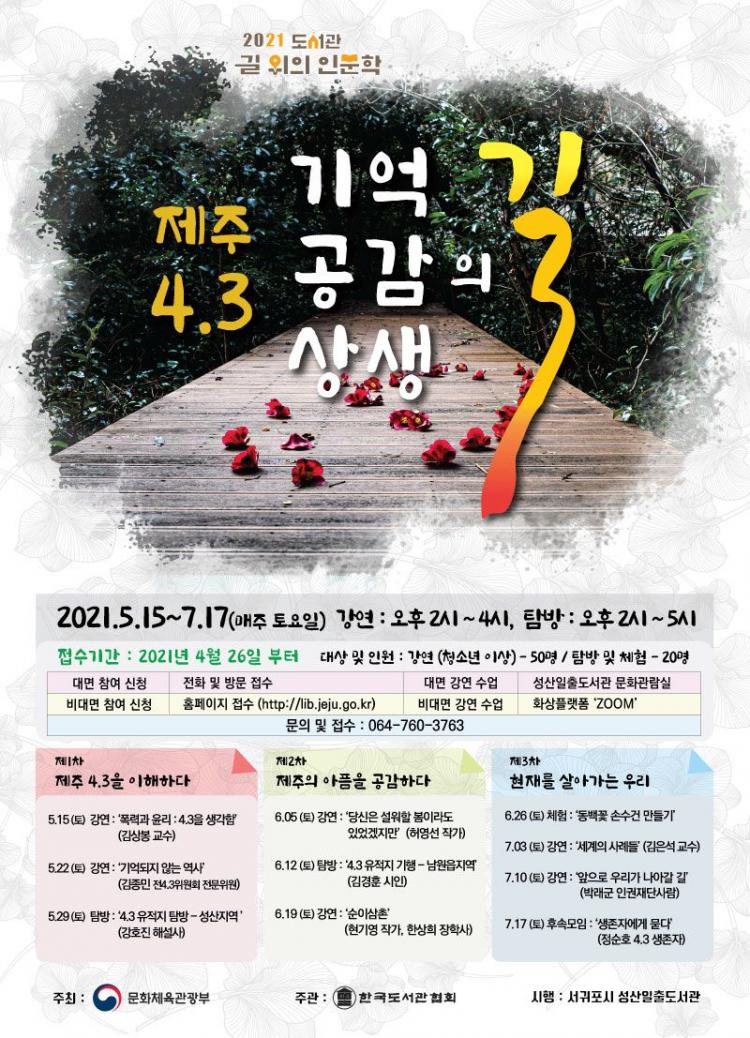 À̹ø ±æ À§ÀÇ Àι®ÇÐ »ç¾÷Àº 5¿ù 15ÀϺÎÅÍ 7¿ù 17ÀϱîÁö ¸ÅÁÖ Åä¿äÀÏ ¿ÀÈÄ 2½Ã¿¡ ´ë¸é°ú ¿Â¶óÀÎ ºñ´ë¸é °ÀÇ·Î µ¿½Ã¿¡ ¿î¿µµÇ¸ç, 4¿ù 26ÀϺÎÅÍ ½Åû¹Þ°í ÀÖ´Ù. ÀÚ¼¼ÇÑ ÀÏÁ¤Àº Á¦ÁÖÆ¯º°ÀÚÄ¡µµ °ø°øµµ¼°ü ȨÆäÀÌÁö(https://lib.jeju.go.kr)¿¡¼ È®ÀÎÇÏ¸é µÈ´Ù.