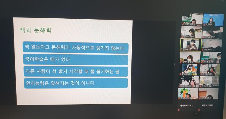¡®1Çгâ ù ¹è¿òÃ¥¡¯ÀÇ ÀúÀÚ, ¡®Ãʵ¾î¼ö¾÷¡¯°ú ¡®7ÀÎ 7»ö ¼ö¾÷ À̾߱⡯ÀÇ °øÀúÀÎ ¼¿ï µµºÀÃÊ ¹ÚÁöÈñ ±³Àå¼±»ý´ÔÀÌ °»ç·Î ÃÊûµÇ¾úÀ¸¸ç¡®¹®Çط°ú ÇнÀ·Â, ¹®ÇØ·ÂÀ» Çâ»óÇÏ´Â ±¹¾î¼ö¾÷ Ȱµ¿¡¯À̶ó´Â ÁÖÁ¦·Î ÁøÇàµÇ¾ú´Ù. ƯÈ÷ ÃʵîÇб³ 2Çг⠱³½Ç¿¡¼ ÇлýµéÀÇ ¾ð¾î¹ß´Þ°úÁ¤¿¡ ¾Ë¸ÂÀº Ȱµ¿À» ¼Ò°³Çϰí Àϻ󿡼 ¾îÈÖ¸¦ È®´ëÇÒ ¼ö ÀÖ´Â ³¯¸¶´Ù Ã¥ ÀоîÁÖ±â, ³¹¸»³îÀÌ, ¼¼ ¹®Àå ¾²±â µî ±¹¾î°ú ±³À°°úÁ¤À» À籸¼ºÇÏ´Â ¹æ¹ý°ú ´Ù¾çÇÑ È°µ¿ »ç·Ê¸¦ °øÀ¯ÇÏ´Â ½Ã°£À» °¡Á³´Ù.
