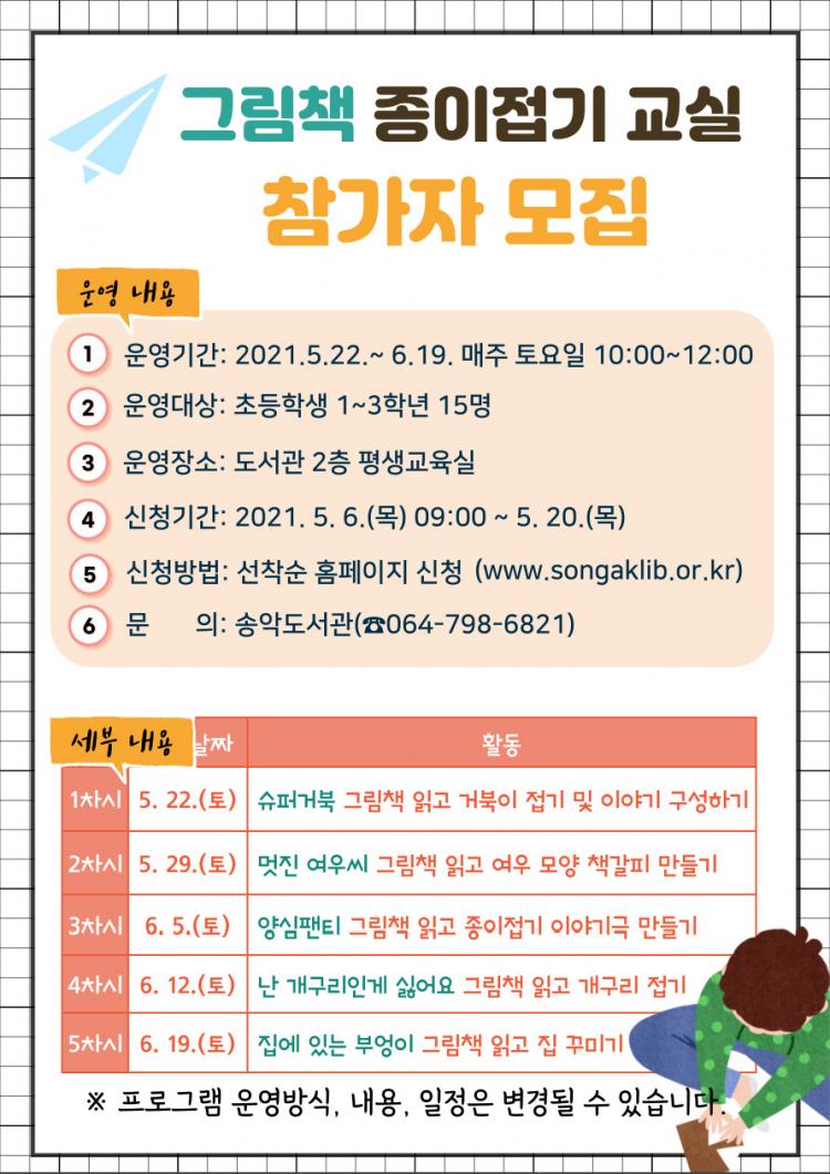 [Á¦ÁÖµµ¹Î½Å¹® = ¿À½ÂÅà ±âÀÚ] ¼Û¾Çµµ¼°ü(°üÀå ±è¼ö¹ü)Àº °ü³» ÇлýµéÀÌ Á¾ÀÌÁ¢±â¸¦ ÅëÇØ âÀǷ°ú »ó»ó·ÂÀ» Çâ»óÇÏ´Â ±âȸ¸¦ ¸¶·ÃÇϰíÀÚ¡®2021³â ±×¸²Ã¥ Á¾ÀÌÁ¢±â ±³½Ç¡¯Âü°¡ÀÚ¸¦ ¸ðÁýÇÑ´Ù.