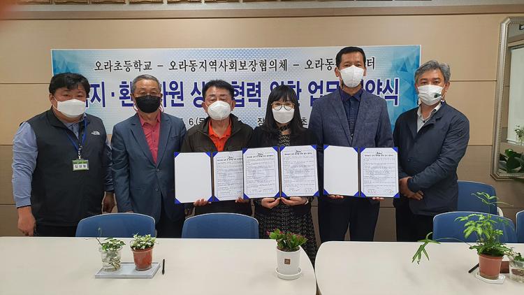 ¿À¶óµ¿Áö¿ª»çȸº¸ÀåÇùÀÇü(À§¿øÀå ¾ç±¹³²)´Â ÀåÇÐ±Ý ±âŹÀ» ºñ·ÔÇÏ¿© º¹Áö»ç°¢Áö´ë ÇØ¼Ò, Æ´»õ°èÃø Áö¿ø µî ¼Ò¿Ü°èÃþÀÇ º¹Áö ÁõÁøÀ» µµ¸ðÇÏ°í »îÀÇ Áú Çâ»óÀ» ¸ñÇ¥·Î ¿À¶óÃʵîÇб³¿¡ ´Ù¾çÇÑ Áö¿øÀ» ÇØ¿À´ø Áö¿ª ÀÚ»ý´ÜüÀÌ´Ù. À̹ø Çù¾àÀ» ÅëÇÏ¿© ´õ¿í´õ ±ä¹ÐÇÑ ¿¬°è Ȱµ¿À» ÅëÇÏ¿© Ãë¾à°èÃþ ÁÖ°Åȯ°æ °³¼± ¹× À§±â°¡Á¤ ¾Æµ¿ Áö¿ø Ȱµ¿, ¿ì¸® °íÀå ¾Ë±â ±³À° Áö¿ø Ȱµ¿À» Áß½ÉÀ¸·Î Çб³¿Í Çù·ÂÇϱâ·Î ÇÏ¿´´Ù.